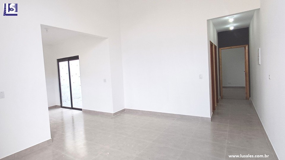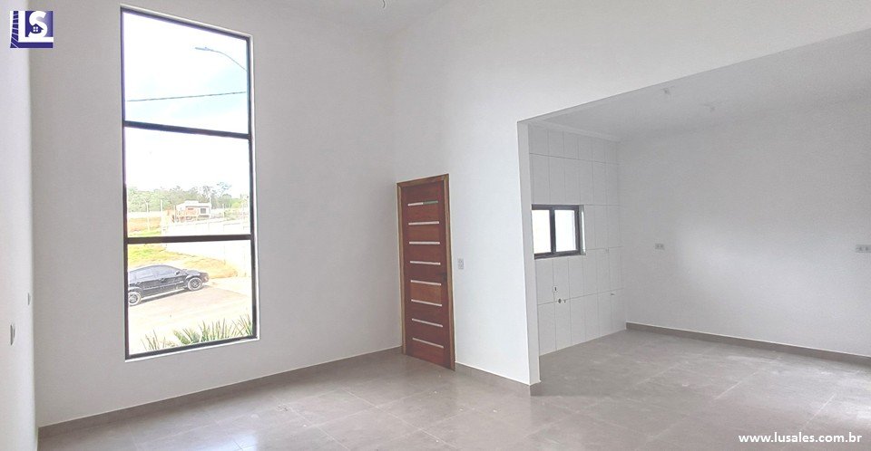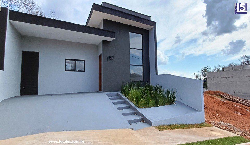 Sala para 2 ambientes com pé direito alto, Cozinha em conceito aberto, Área de serviço, Banheiro, 2 Quartos sendo 1 Suíte, Jardim e Garagem para 2 veículos.