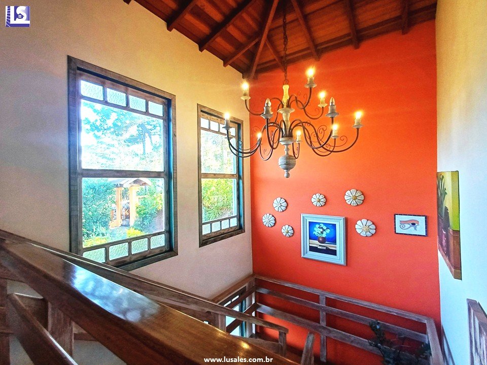 O imóvel possui 7 Quartos sendo 5 Suítes todos com vista panorâmica para área de preservação, Sala para 2 ambientes, Escritório, 10 banheiros, Área de serviço, Cozinha principal, Cozinha caipira, Espaço gourmet, Sacadas, Varanda, Salão de festas, Edícula, Piscina, Energia solar, Quarto de ferramentas, Pomar e Garagem para até 12 carros.