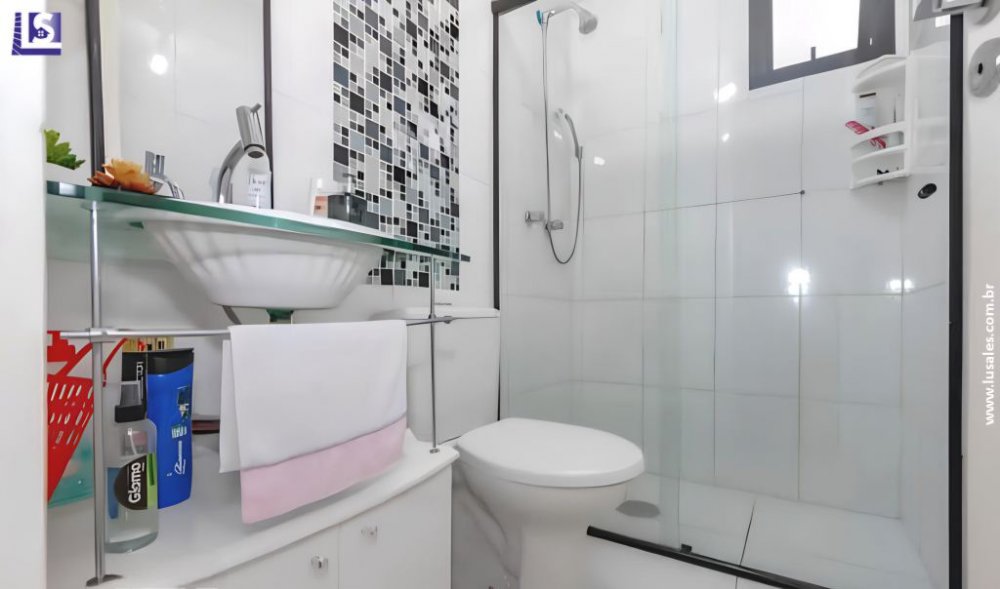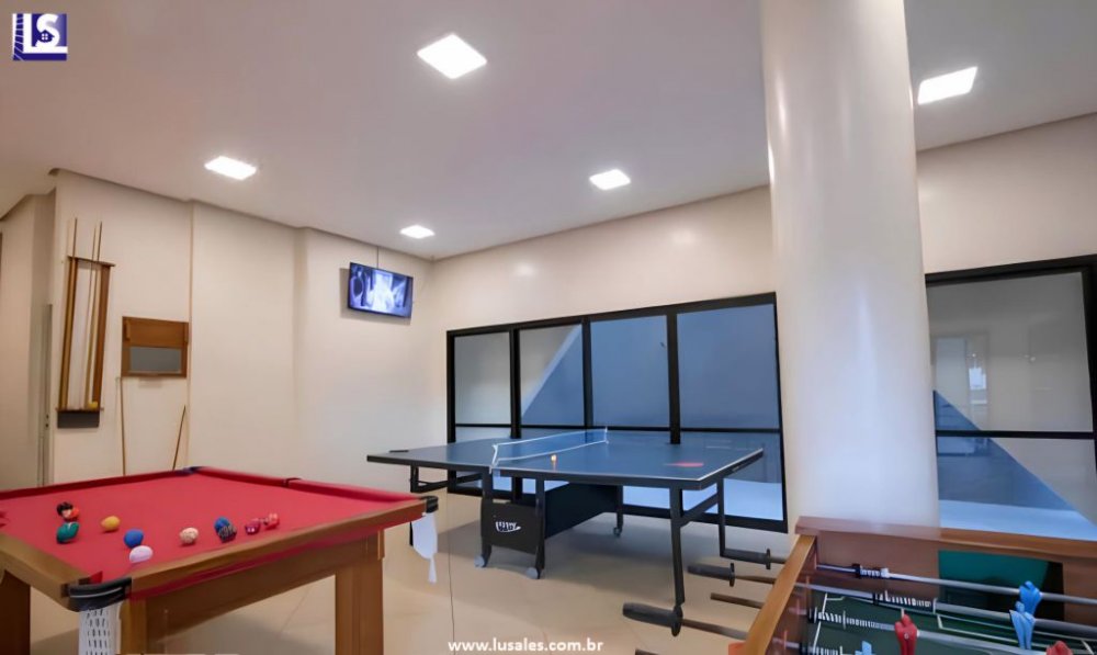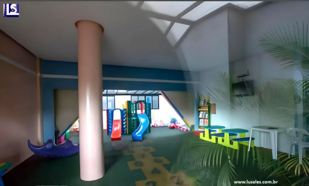O imóvel dispõe de uma vaga na garagem, área de convivência e lazer completo com academia, salão de jogos, 2 salões de festas, quadra poliesportiva, piscina adulto e infantil, playground, brinquedoteca e biblioteca.